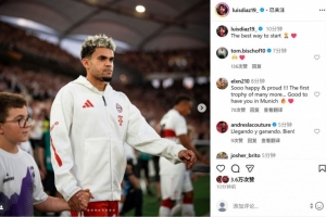 本場比賽新援路易斯-迪亞斯破門,打進拜仁生涯首球,他也在個人社媒曬出本場入場時照片,配文寫道:“以最好的方式開啟新賽季????”