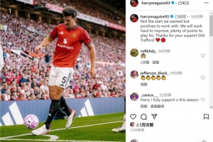 馬奎爾社媒曬出比賽照片,并寫(xiě)道:“這不是我們想要的開(kāi)局,但也有積極的因素可以汲取,我們會(huì)努力改進(jìn),還有大量的積分可以爭(zhēng)取。感謝大家在老特拉福德的支持?!?/p>