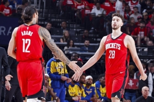 今年2月亞當(dāng)斯通過交易來到火箭。今年季后賽期間他場均22.1分鐘可貢獻(xiàn)5.7分6.6板1.1帽。