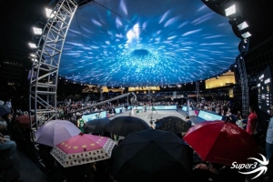 當(dāng)籃球的激情與油罐藝術(shù)中心的文藝產(chǎn)生碰撞,2025賽季超三聯(lián)賽的揭幕戰(zhàn)便注定與眾不同!盡管驟雨突襲,卻澆不滅球迷的熱情——場(chǎng)邊五顏六色的雨傘連成一片,歡呼聲穿透雨幕,與球員的每一次交鋒、每一記遠(yuǎn)投共振。冒雨高舉手機(jī)記錄精彩瞬間的球迷們,才是這場(chǎng)全民籃球盛宴的真正主角。