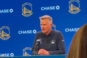記者: 這不是一個(gè)新問(wèn)題,但庫(kù)里今晚非常努力地創(chuàng)造投籃機(jī)會(huì)。與此同時(shí),其他投籃不太準(zhǔn)的球員似乎有點(diǎn)猶豫。在賽季中段,你是否開(kāi)始擔(dān)心庫(kù)里的身體狀況?