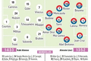 體育資訊8月19日訊 北京時間明天凌晨3點,皇馬將在西甲首輪比賽中主場對陣奧薩蘇納。西班牙媒體《馬卡報》預(yù)測了皇馬此役的首發(fā)陣容,姆巴佩、維尼修斯、迪亞斯組成三叉戟。