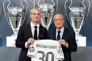OptaJose的數(shù)據(jù)統(tǒng)計,18歲零5天的馬斯坦托諾是皇馬在西甲第三年輕首秀的外國球員。