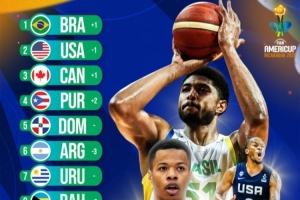 體育資訊8月20日訊 今天,男籃美洲杯官方公布了新一期的美洲杯實(shí)力榜,巴西男籃升至第一,美國(guó)男籃降至第二。具體如下(括號(hào)內(nèi)為相比上一期的升降名次):