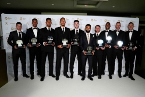 曼城的詹姆斯-特拉福德因上賽季隨伯恩利升級(jí)而被評(píng)為英冠年度最佳球員。理查德-科內(nèi)憑借在韋康比流浪者隊(duì)的出色表現(xiàn)贏得了英甲年度最佳球員獎(jiǎng),而布羅姆利的邁克爾-奇克則獲得了英乙年度最佳球員獎(jiǎng)。