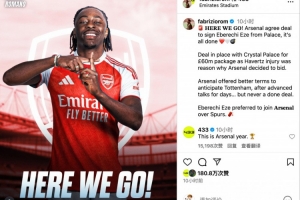 下一篇: 截胡成功!天空:阿森納簽埃澤達(dá)協(xié)議,轉(zhuǎn)會(huì)費(fèi)總價(jià)6750萬鎊!