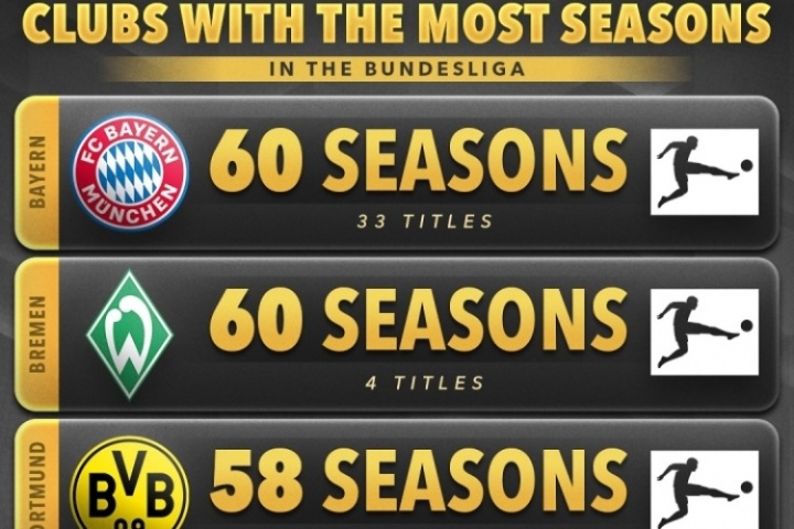 2、不萊梅,60個賽季,4冠