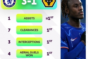 體育資訊1月21日訊 在本輪英超切爾西3-1擊敗狼隊(duì)的比賽中,查洛巴迎來回歸球隊(duì)首場比賽,最終他也憑借出色發(fā)揮當(dāng)選英超官方評選出的本場最佳球員。