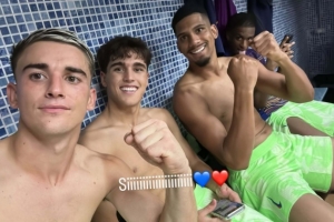 加維賽后更新社媒動(dòng)態(tài),曬出與阿勞霍、庫巴西在更衣室的合照,慶祝球隊(duì)取勝。