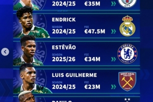 恩德里克 23/25賽季加盟皇馬 4750萬歐