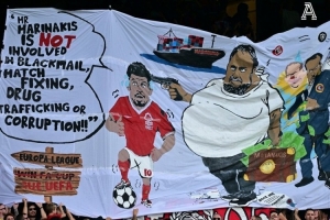 橫幅上吉布斯-懷特說道:“馬里納基斯先生并未涉及敲詐、操縱比賽、販毒或腐??!”馬里納基斯一直強(qiáng)烈否認(rèn)與這些指控相關(guān)的任何不當(dāng)行為。