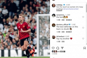 德里赫特此役為曼聯(lián)踢滿全場(chǎng),賽后他在社交媒體上寫道:“這不是我們想要的結(jié)果,讓我們繼續(xù)努力!”