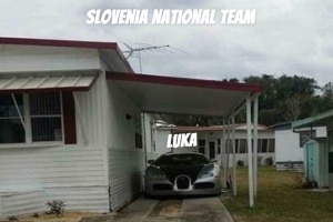 自媒體Luka Updates曬圖為歐錦賽預(yù)熱。圖中是一個破敗的小院中停著一輛豪車。豪車上面標(biāo)注著“Luka”,而這個小院則被標(biāo)注為斯洛文尼亞男籃。
