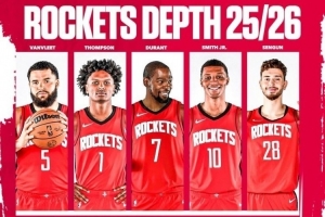 新增:后衛(wèi)/前鋒尼基爾-亞歷山大-沃克(通過與森林狼的先簽后換得到四年6200萬美元合同)、后衛(wèi)/前鋒盧克-肯納德(一年1100萬美元)、中鋒克里斯塔普斯-波爾津吉斯(交易自凱爾特人)、前鋒恩法利-當特(兩年450萬美元)、前鋒/中鋒阿薩-紐厄爾(來自鵜鶘的選秀權)、前鋒雅各布-托平(雙向合同)、前鋒伊萊-恩迪亞耶(雙向合同)、后衛(wèi)基頓-華萊士(雙向合同)、后衛(wèi)拉蒙特-巴特勒(雙向合同)、后衛(wèi)科比-約翰遜(Exhibit 10合同)、2026年首輪簽(交易自鵜鶘)、2031年火箭次輪簽的互換權、總經理昂西-薩利赫升職