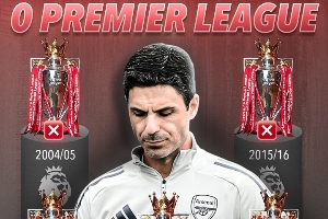 阿森納已經(jīng)21年未奪得英超冠軍,自從上次奪冠(03/04賽季)之后,阿森納已經(jīng)5次獲得英超亞軍,期間經(jīng)歷了15/16賽季的藍狐奇跡和近幾年的三連亞。