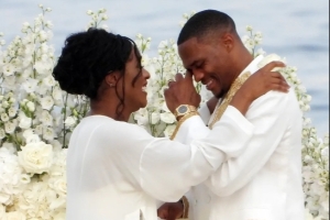 從現(xiàn)場的照片可以看到,威少流下了激動的淚水,妮娜則身著一件華麗的白色長裙,并佩戴了一枚鉆石戒指。