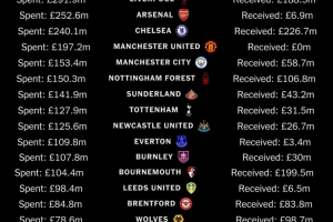 體育資訊8月26日訊 The Athletic網(wǎng)站統(tǒng)計(jì)了截至目前英超各俱樂(lè)部今年夏窗的轉(zhuǎn)會(huì)支出/收入情況,具體數(shù)據(jù)如下:
