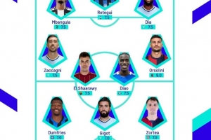 體育資訊1月21日訊 意甲第21輪結(jié)束 ,意甲官方也評(píng)選出本輪聯(lián)賽最佳陣,其中鄧弗里斯、姆班古拉在列。以下為具體陣容: