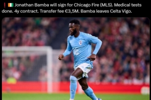 報(bào)道稱班巴已經(jīng)完成加盟前的體檢,他將會(huì)與芝加哥火焰簽下4年合約,轉(zhuǎn)會(huì)費(fèi)為350萬歐。