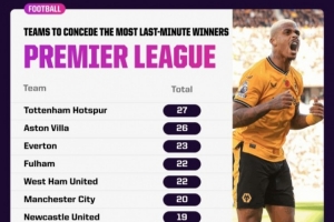 體育資訊8月27日訊 在英超歷史上,有一些球隊經(jīng)常會成為最后一分鐘被絕殺的背景板。OPTA盤點了英超歷史最后一分鐘被絕殺次數(shù)最多球隊top10,熱刺27次居首。