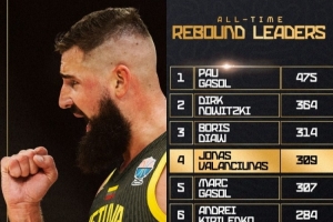 本場比賽,立陶宛球員瓦蘭丘納斯13投7中、罰球6中4,砍下全場最高的18分和9籃板,外加1助攻1蓋帽。