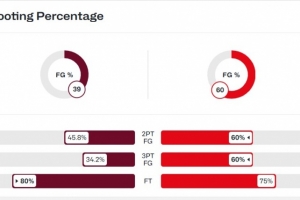 此役,土耳其男籃進(jìn)攻端打出了非常高效的表現(xiàn),他們的投籃命中率(投籃55中33)和三分命中率(30中18)都高達(dá)60%,罰球命中率(16中12)則相當(dāng)一般只有75%。