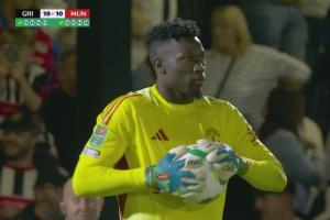 體育資訊08月28日訊 曼聯(lián)vs格林斯比,格林斯比點(diǎn)球12-11戰(zhàn)勝曼聯(lián),格林斯比13粒點(diǎn)球,奧納納僅撲出1粒。