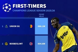體育資訊8月29日訊 德國(guó)轉(zhuǎn)會(huì)市場(chǎng)統(tǒng)計(jì)了歐冠新軍的身價(jià),并列出榜單,圣吉羅斯8610萬(wàn)歐居首,凱拉特1280萬(wàn)歐最低。
