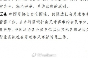 當(dāng)然了,但凡對(duì)中國(guó)足協(xié)職責(zé)有點(diǎn)了解,懂點(diǎn)新體育法的,或者看過這個(gè)文件的,都不至于想出個(gè)這么搞笑的聯(lián)系。因?yàn)檫@個(gè)文件出臺(tái)背景是蘇超誕生之前的事情,里面甚至白紙黑字規(guī)定了分好了中國(guó)足協(xié)和地方足協(xié)、社會(huì)辦賽方的權(quán)利義務(wù),甚至規(guī)定地方賽事主辦者才是賽風(fēng)賽紀(jì)第一責(zé)任人,廣大球迷深惡痛絕的賽風(fēng)賽紀(jì)問題現(xiàn)在捋順了明確的職責(zé)分工,反而對(duì)蘇超這類社會(huì)賽事來說是個(gè)大大的好事。