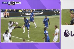 比賽第50分鐘,查洛巴傳中,塞塞尼翁禁區(qū)內(nèi)手球,主裁場邊回看中。