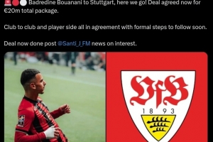 體育資訊8月30日訊 據(jù)知名轉(zhuǎn)會(huì)專家羅馬諾報(bào)道,斯圖加特將簽下尼斯20歲前鋒布阿納尼,Here we go!