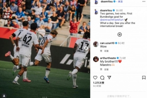 賽后堂安律社媒曬出和隊(duì)友慶祝照,并配文寫道:“兩戰(zhàn)兩勝,而且我收獲了法蘭克福生涯的德甲首球,多么美妙的一天!國際比賽日后再見!”