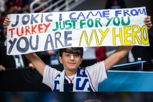 歐洲杯官方曬圖,小球迷舉牌:約基奇,我從土耳其過來只為看你,你是我的英雄!
