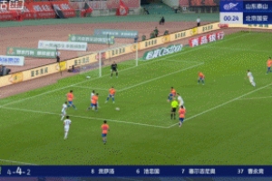 比賽開場僅30秒,泰山隊后場拿球被斷,古加兜射稍稍偏出,場上比分山東泰山0-0北京國安。