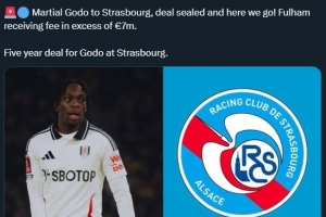 “富勒姆將獲得超過700萬歐元的轉(zhuǎn)會費,戈多與斯特拉斯堡簽約五年?!?/p>