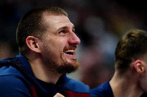比賽中,約基奇玩性大發(fā)還整活出了頭頂球開(kāi)底線球的絕活兒。