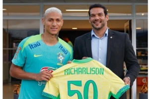 體育資訊9月3日訊 理查利森獲贈(zèng)為巴西隊(duì)出戰(zhàn)50場(chǎng)里程碑紀(jì)念球衣,他在社交媒體上發(fā)表感想。