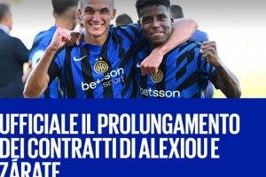 體育資訊9月3日訊 國米官方宣布和兩名小將克里斯托斯-亞歷克西烏(Christos Alexiou)和迪蘭-薩拉特(Dilan Zárate)續(xù)約兩年。