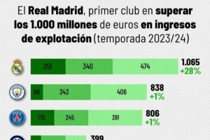 體育資訊1月22日訊 據(jù)《馬卡報》報道,皇馬成為歷史上第一支營收超過10億歐元的俱樂部。
