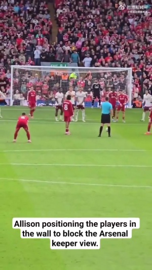 在索博打入制勝任意球前,阿利森特地過來指導(dǎo)維爾茨和加克波在排人墻時(shí)擋住拉亞視線。
