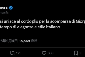 體育資訊9月4日訊 意大利時裝設(shè)計師、奢侈品牌阿瑪尼創(chuàng)始人喬治-阿瑪尼在今日離世,享年91歲,尤文官方通過社交媒體進行了悼念。