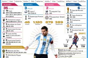 194場(chǎng)114球58助,6冠(1次世界杯2次美洲杯1次歐美杯1次奧運(yùn)會(huì)1次世青賽)