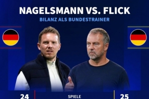 體育資訊9月5日訊 德國隊(duì)在周四晚的世預(yù)賽首輪比賽中0-2不敵斯洛伐克,在最近三場比賽中遭遇三連敗。德國轉(zhuǎn)會(huì)市場網(wǎng)對比了現(xiàn)任主帥納格爾斯曼和前任弗里克的同期數(shù)據(jù),并指出兩人的執(zhí)教成績都不理想。