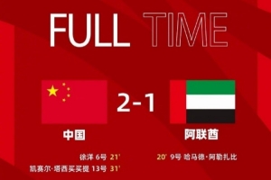 徐洋、凱賽爾建功,中國隊(duì)2:1逆轉(zhuǎn)戰(zhàn)勝阿聯(lián)酋隊(duì)取得開門紅!