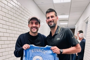 科瓦西奇因?yàn)榇饲敖邮苁中g(shù),目前仍然在恢復(fù)當(dāng)中,他也借此機(jī)會(huì)前往美國(guó)觀看美網(wǎng),與德約科維奇合影并將自己的曼城球衣贈(zèng)送給他。