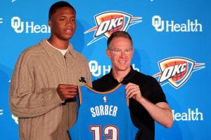索伯現(xiàn)年19歲,身高2米08,體重113公斤,司職中鋒/大前鋒,在今年選秀大會首輪第15順位被雷霆選中。
