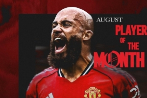 姆伯莫8月為曼聯(lián)出戰(zhàn)4場比賽,打進2球,曼聯(lián)官方曬出海報,宣布他當選8月份隊內最佳球員。