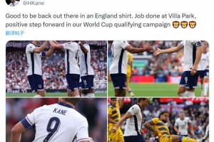 英格蘭隊(duì)長(zhǎng)凱恩更新社媒動(dòng)態(tài),曬出比賽照片,配文:“很高興再次身穿英格蘭隊(duì)球衣出戰(zhàn),在維拉公園完成了任務(wù),這是我們?cè)谑澜绫A(yù)選賽征程中向前邁出的積極一步?!?/p>
