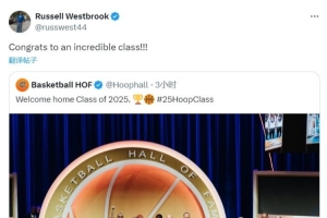 威少在社媒上向這屆名人堂成員送上了祝賀,寫道:“恭喜他們,了不起的一屆?。?!”