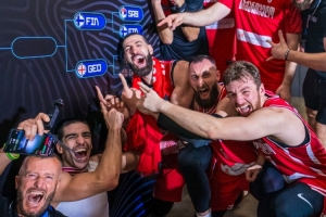 這是格魯吉亞男籃歷史首次打進(jìn)歐錦賽八強(qiáng)。賽后的格魯吉亞眾將在晉級(jí)墻前興奮合影。